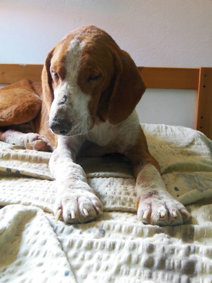 Willy was in rough condition and in desperate need of help. Having to fly home to Belgium the next day, there was nothing Hanne could do for him so with a heavy heart, she left Willy to the street. Time passed. But love found a way. Hanne could not stop thinking about Willy who had unwittingly taken a piece of her heart. She searched online for months for someone who would locate him, hoping he was still alive. Eventually she found Steph, who with a local volunteer, found Willy. Steph brought food to Willy daily but his condition worsened. Willy was very sick. Hanne could not allow him to die alone in the street. She begged the volunteer to take him to the vet. Willy was only about a year old but his kidneys were failing. The vet recommended euthanasia but Hanne would not hear of it. With the help of Steph they got Willy off the street and he was now getting medication and food. Still, it took months to get his health under control. As soon as she could, Hanne rallied friends and together they drove from Belgium to Montenegro, a twenty-two hour drive, to rescue Willy. Weak from disease, Willy slept on the long journey back. In his new home, Willy still had many more health challenges to overcome, but he had a will to live. With love and care Willy eventually recovered.